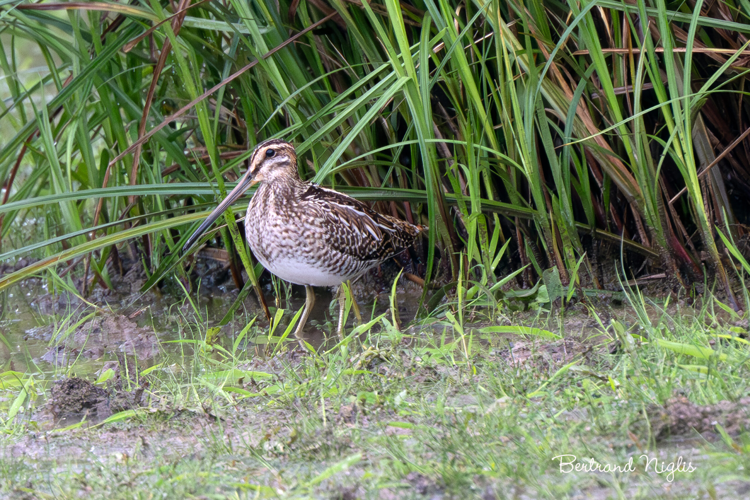 Depuis quelques jours, les étangs d’Altenach accueillent de nouveaux visiteurs : des bécassines des marais. Au moyen de leur long bec, elles sondent avec frénésie les sols humides du plan d’eau, la boue et la vase. L’extrémité supérieure de la mandibule est flexible et incurvée, ce qui lui permet de détecter ses proies par le toucher et les vibrations, même quand elles sont enfouies profondément dans le sol. Son mets favori? Les vers de terre qu’elle attrape en grandes quantités. Elle se nourrit également de larves de diptères, de coléoptères, de petits crustacés aquatiques ou de mollusques. Ayant niché dans le nord de l’Europe (Grande Bretagne et Scandinavie) ou en Russie, elle a entré les zones d’hivernage dans son GPS : le littoral atlantique, les pays méditerranéens, voire même l’Afrique tropicale. Pas question de s’éterniser ici ; il faut juste reprendre des forces et se reposer un peu avant de poursuivre la route. La bécassine des marais voyage généralement seule ou en petits groupes lâches ; elle se déplace essentiellement de nuit, ce qui lui permet de ne pas rencontrer les prédateurs diurnes, en particulier les rapaces.