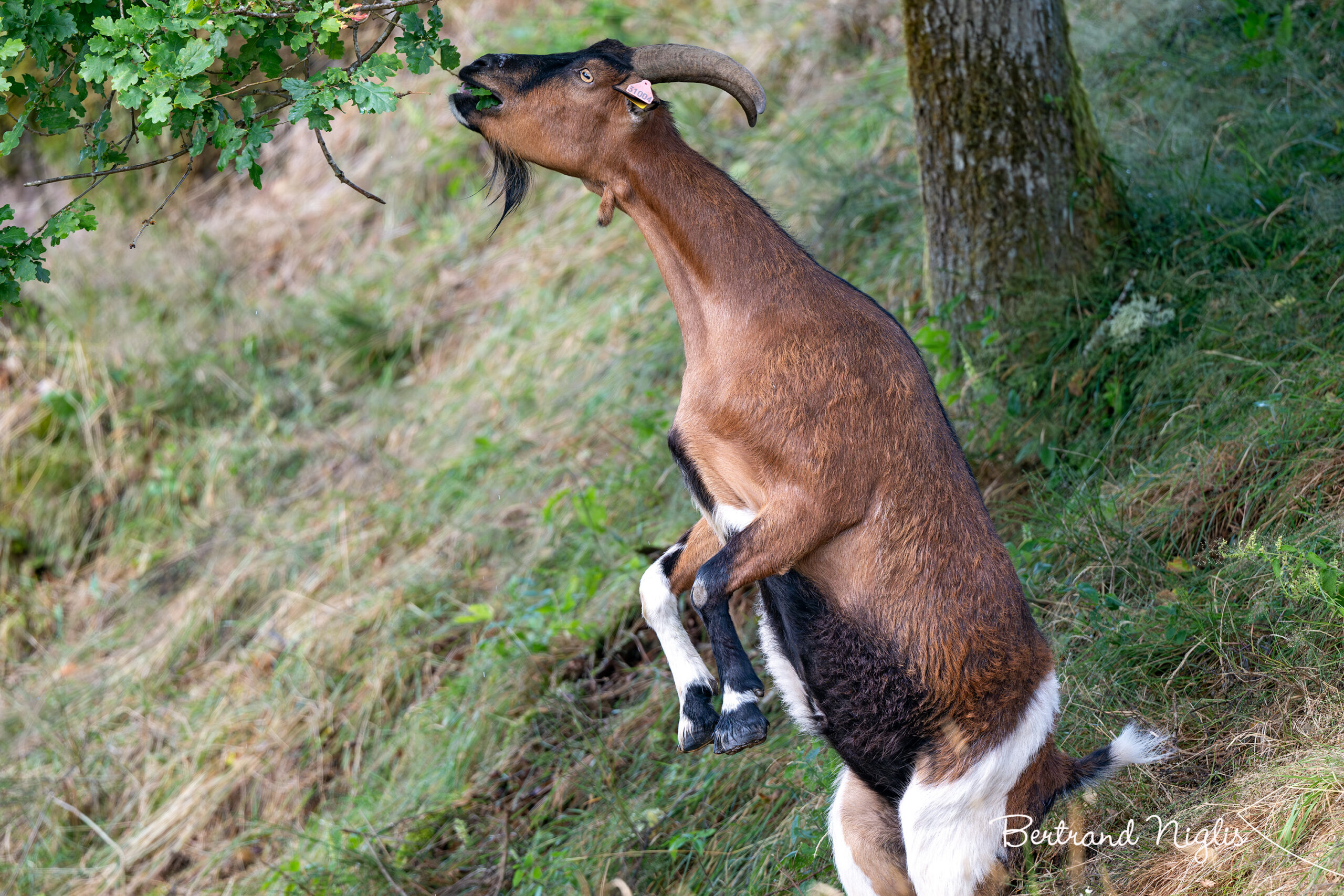 Le fort du Parmont domine la ville de Remiremont. Il a été édifié après la guerre de 1870 et a fait partie du rideau défensif de Haute-Moselle entre les places fortes d’Epinal et de Belfort. A l’origine, l’entretien du fossé et du mur de l’enceinte était confié aux militaires. Aujourd’hui, l’armée emploie ses bras à des tâches plus stratégiques et ce sont des chèvres qui se voient confier cette besogne. Elles s’en chargent de manière très efficace et en mode écologique de surcroît. Malheureusement, les biquettes qui étaient à l’origine une dizaine se sont reproduites ; on en dénombre à présent vingt-deux, qui se trouvent un peu à l’étroit. Même la nourriture vient à manquer, obligeant les plus hardies à quelques acrobaties pour goûter aux feuilles des chênes qui poussent sur cette pente abrupte. Le prélèvement se fait en toute discrétion car la nature a préféré doter le cou de ces animaux de pampilles, des petites boules de peau recouvertes de poils, plutôt que des grelots.