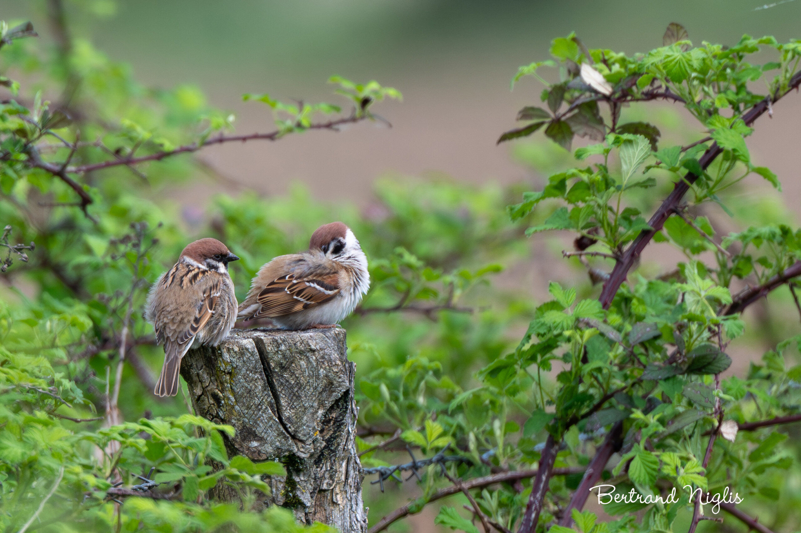 A première vue, on pourrait les prendre pour des moineaux domestiques mais en les observant attentivement, on distingue des différences notables. Le gris de la tête est remplacé par du brun chocolat. La joue est blanche avec un point noir sous l’oeil. Quand le moineau domestique est habitué à vivre à proximité des hommes, le moineau friquet préfère se réfugier à la campagne. Il apprécie les espaces ruraux à l’assolement varié, avec des vergers, des haies et des vieux arbres, des zones de cultures envahies par les herbes. Et c’est bien là, son malheur car ce paysage idyllique n’en finit pas de disparaître. Depuis la seconde moitié du 20è siècle, les effectifs de moineaux friquets sont en forte diminution. A l’autre bout de la terre également ils ont connu un cataclysme lorsque Mao Zedong a décrété en 1958 « le grand bond en avant » en lançant la campagne des quatre nuisibles : rats, mouches, moustiques … et moineaux friquets. Ces derniers ont été exterminés, mais les insectes ravageurs ont prospéré et les récoltes se sont révélées encore moins abondantes.