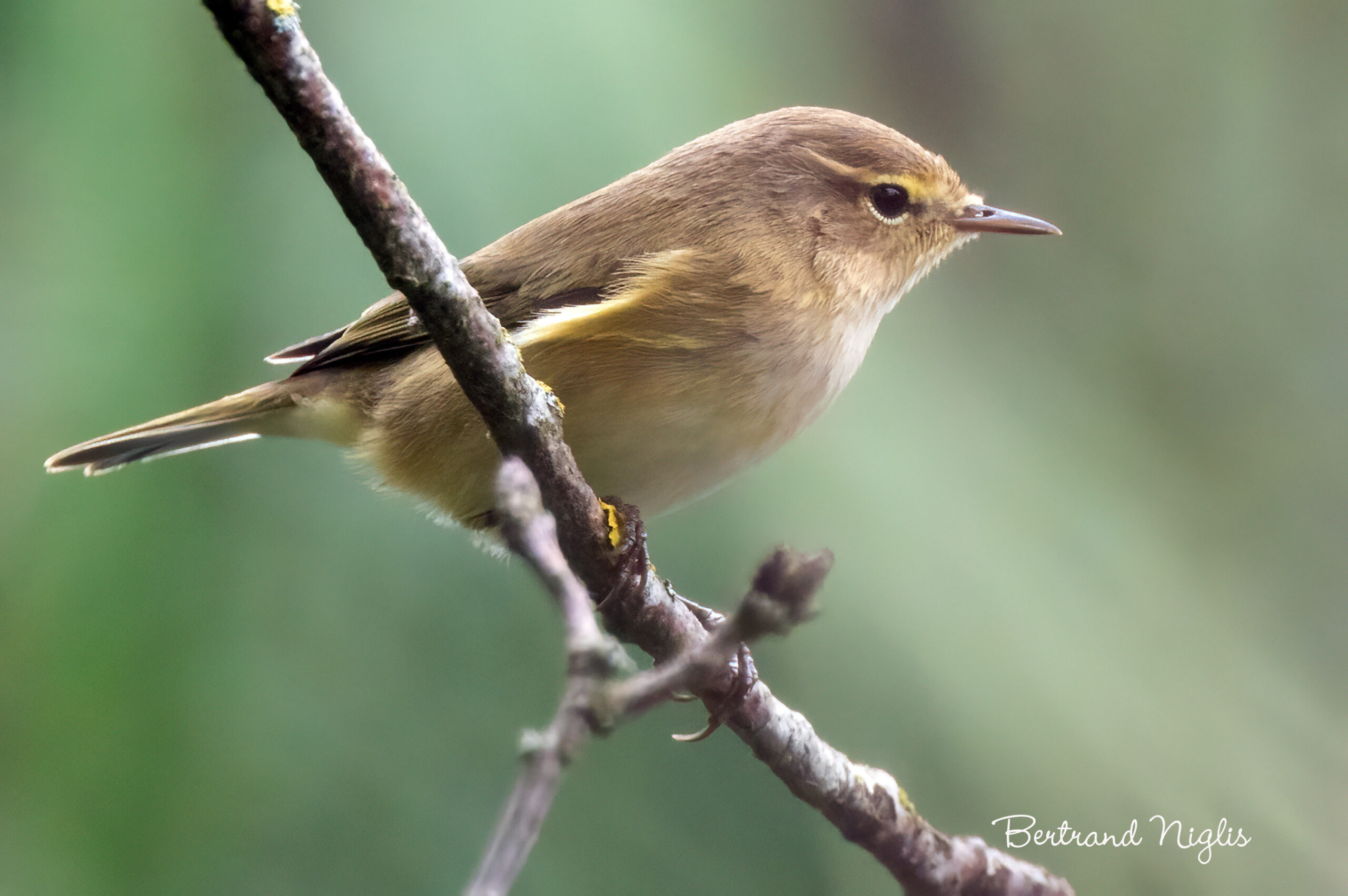 Pour nommer cet oiseau, c’est le mot Collybita qui a été retenu : il désigne le courtier, le changeur d’argent. Dans le langage courant, on le surnomme d’ailleurs le compteur d’écus, en référence à son chant, une répétition dansante de simples notes espacées. Il fait aussi penser au maréchal ferrant qui frappe sur l’enclume ou encore au sergent, avec son fameux « une, deux »… Le pouillot véloce a le corps et les couvertures claires, brun olive terne. L’aile et la queue sont brun sombre. Sur les rémiges et les rectrices, on peut noter des liserés jaune verdâtre. Le ventre est chamois clair, avec des stries grises et jaunâtres. Il porte un sourcil discret et son oeil est entouré d’un cercle blanc interrompu par un trait noir qui va du bec à la nuque. Un battement fréquent de la queue vers le bas et de brèves ouvertures nerveuses des ailes sont de bons indices désignant le véloce. Il fréquente les milieux arborés les plus divers, mais surtout les forêts à strates buissonnantes riches en insectes. Contrairement à ses cousins, c’est un migrateur partiel, s’arrêtant généralement dans les régions méridionales.