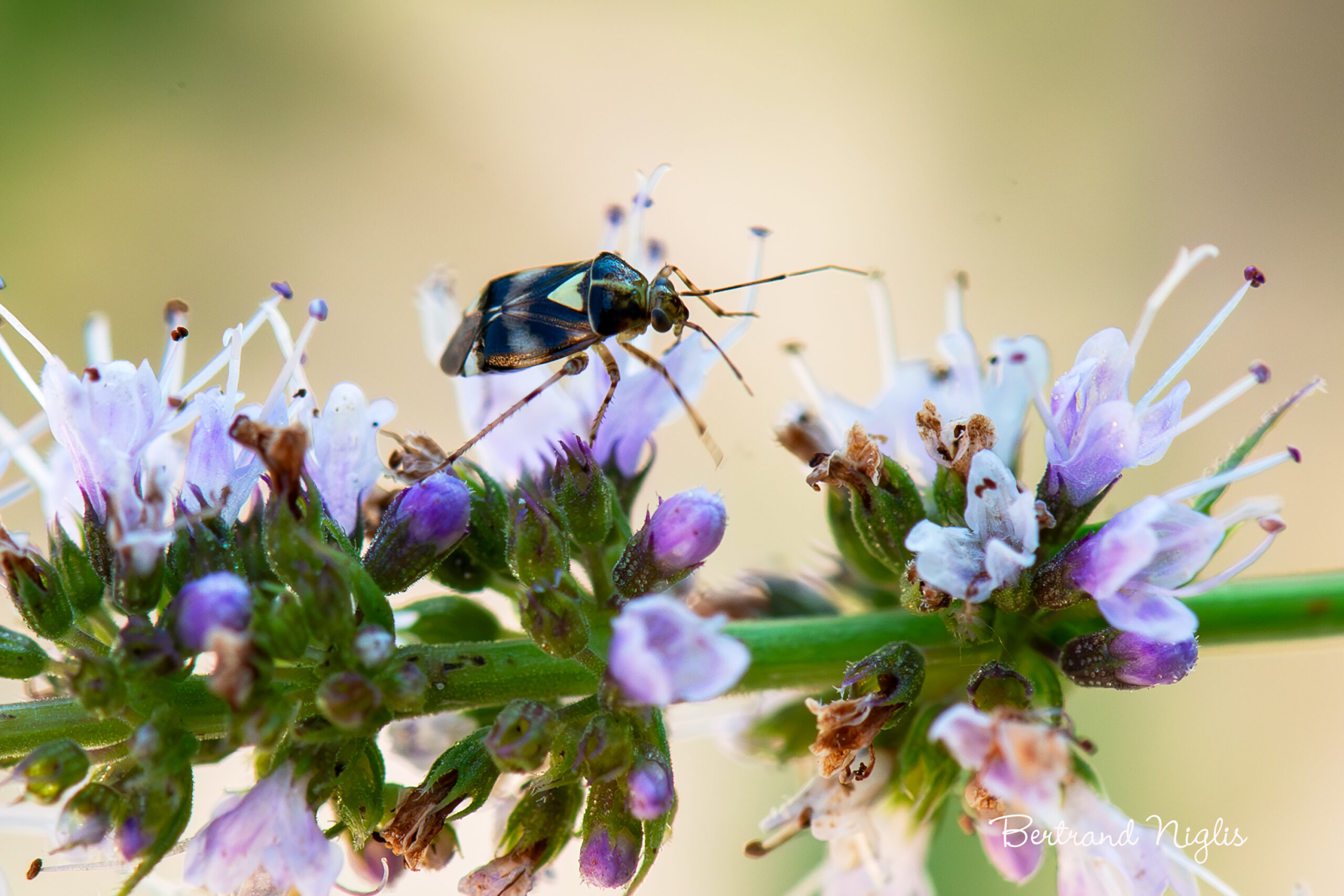 La Punaise des prés (Lygus pratensis), aussi appelée punaise terne, est un insecte Miridae très commun en France et dans une grande partie du monde. Mesurant entre 5 et 7 mm, sa coloration est variable, allant du vert au brun-rougeâtre, avec un scutellum en forme de cœur. Cette punaise se nourrit de la sève de nombreuses plantes, du nectar, des graines et des bourgeons ; occasionnellement elle consomme aussi des pucerons. Les adultes hivernent et pondent leurs œufs au printemps dans les tissus végétaux. Les nymphes éclosent et passent par cinq stades avant de devenir adultes. Plusieurs générations peuvent se succéder annuellement. Bien qu’elle ne soit pas toujours nuisible, de fortes populations peuvent causer des dégâts aux cultures et aux plantes ornementales, entraînant déformations, avortements floraux ou altérations des fruits. Cependant, elle est régulée par de nombreux prédateurs naturels comme les oiseaux, les araignées, les larves de chrysopes, et d’autres parasitoïdes.