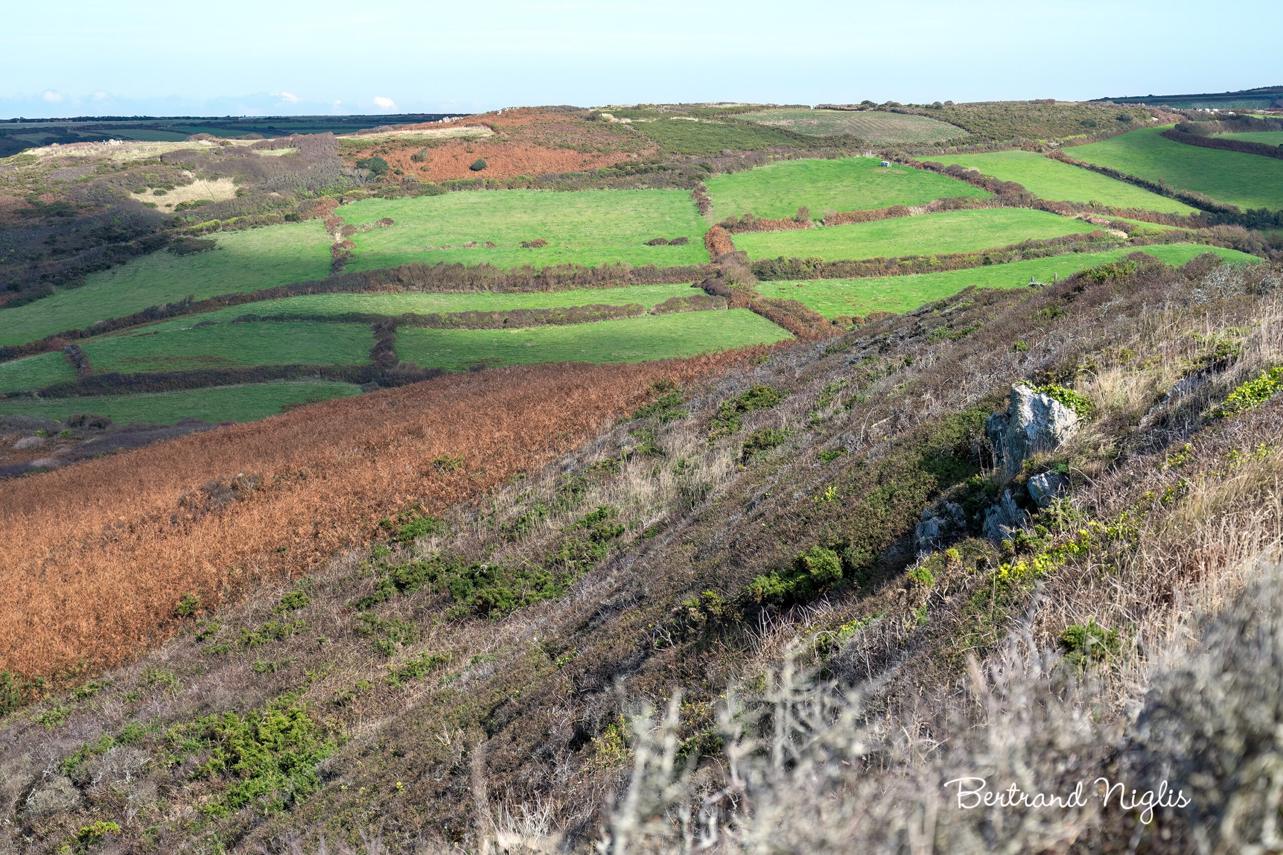 Le bocage normand est l’un des paysages ruraux les plus emblématiques de l’Ouest de la France. Ce paysage agraire anthropique, dont le nom dérive du vieux normand boscage signifiant « lieu boisé », se caractérise par une mosaïque de petites parcelles (champs et pâtures) fermées. Ces parcelles sont délimitées par un réseau continu de haies vives plantées sur des talus et sillonnées de chemins creux. Cette structure n’a pu résister au déclin général du bocage ailleurs en France que grâce à la combinaison de plusieurs facteurs : le relief vallonné et les sols peu propices à la grande mécanisation ont limité le remembrement, tandis que la tradition de l’élevage bovin laitier sur prairie a maintenu la nécessité fonctionnelle des haies pour l’enclosure du bétail et la production de bois. L’enjeu de ce paysage est crucial pour la biodiversité : le maillage de haies et de talus forme un corridor biologique (Trame Verte) vital. Ces haies sont des refuges pour la faune et abritent les auxiliaires de culture, jouant un rôle essentiel dans l’équilibre écologique et agronomique de la Normandie.