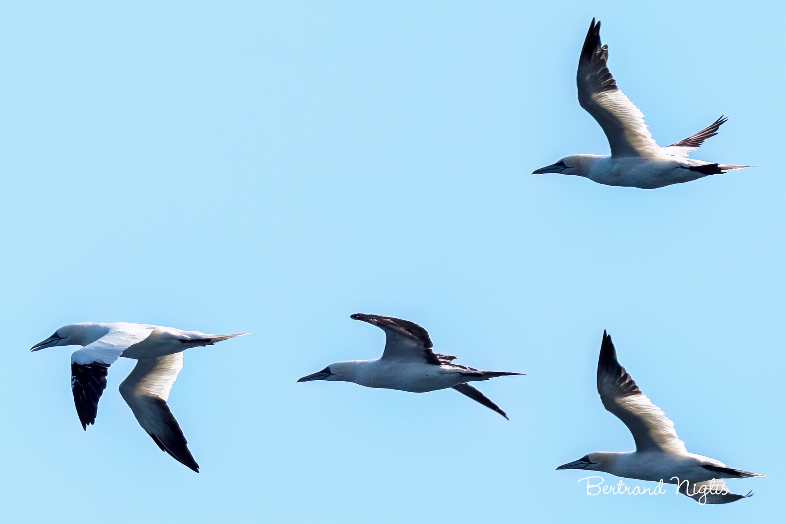 En cette fin septembre, la pointe de Gatteville-Phare offre un point d’observation privilégié pour l’un des plus grands spectacles de l’Atlantique : la migration postnuptiale du fou de Bassan (Morus bassanus). Cet oiseau pélagique, le plus grand d’Europe occidentale, est reconnaissable à son allure puissante, son plumage blanc pur et le noir des extrémités de ses longues ailes. Les individus observés en mer sont des adultes, caractérisés par une teinte jaune pâle sur la tête et le cou. Leur technique de pêche est spectaculaire : un plongeon en piqué vertigineux depuis plusieurs dizaines de mètres, qui a inspiré une partie de son nom. Le terme « Fou » dérive en effet de l’aspect téméraire de ces plongeons vus par les marins d’autrefois, qui ignoraient que l’oiseau avalait sa proie sous l’eau. Quant à « Bassan », il renvoie au célèbre îlot écossais de Bass Rock, l’un de ses principaux lieux de reproduction. La pointe du Cotentin est sur une route migratoire majeure : les individus qui passent en masse ne font que transiter. Ils rejoignent les zones d’hivernage situées dans l’Atlantique Sud, s’étendant jusqu’au large de l’Afrique de l’Ouest pour les jeunes, les adultes se dispersant plus au nord mais loin des colonies. Le spectacle cessera fin octobre, avant leur retour progressif dès le début de l’année.