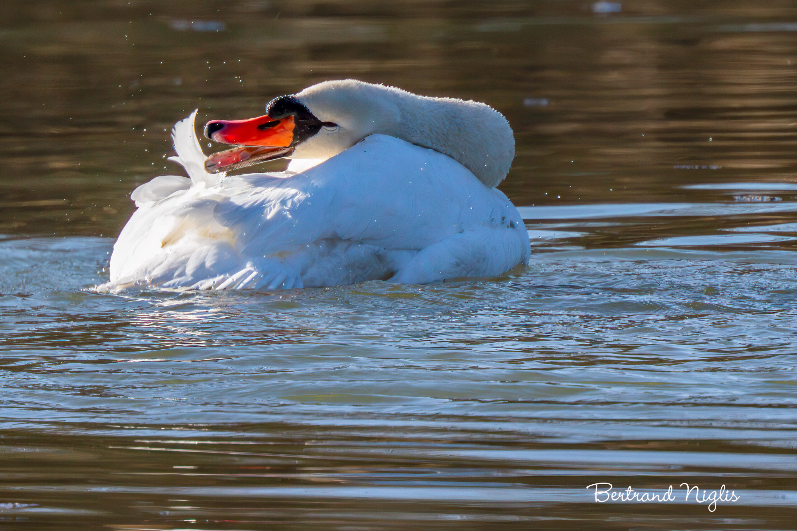 L’étape suivante concerne l’entretien du plumage grâce à la glande uropygienne. Située à la base du dos, elle sécrète une substance riche en cires et en graisses. L’oiseau frotte sa tête contre cette glande pour récolter cette « pommade », puis utilise son cou flexible comme un pinceau pour la répartir sur les zones difficiles d’accès. Plus qu’une simple imperméabilisation, cette huile préserve la souplesse de la kératine et possède des propriétés antifongiques. Avec ses 24 à 25 vertèbres cervicales (contre seulement 7 chez l’humain), le cygne peut atteindre chaque « angle mort » de son corps.
