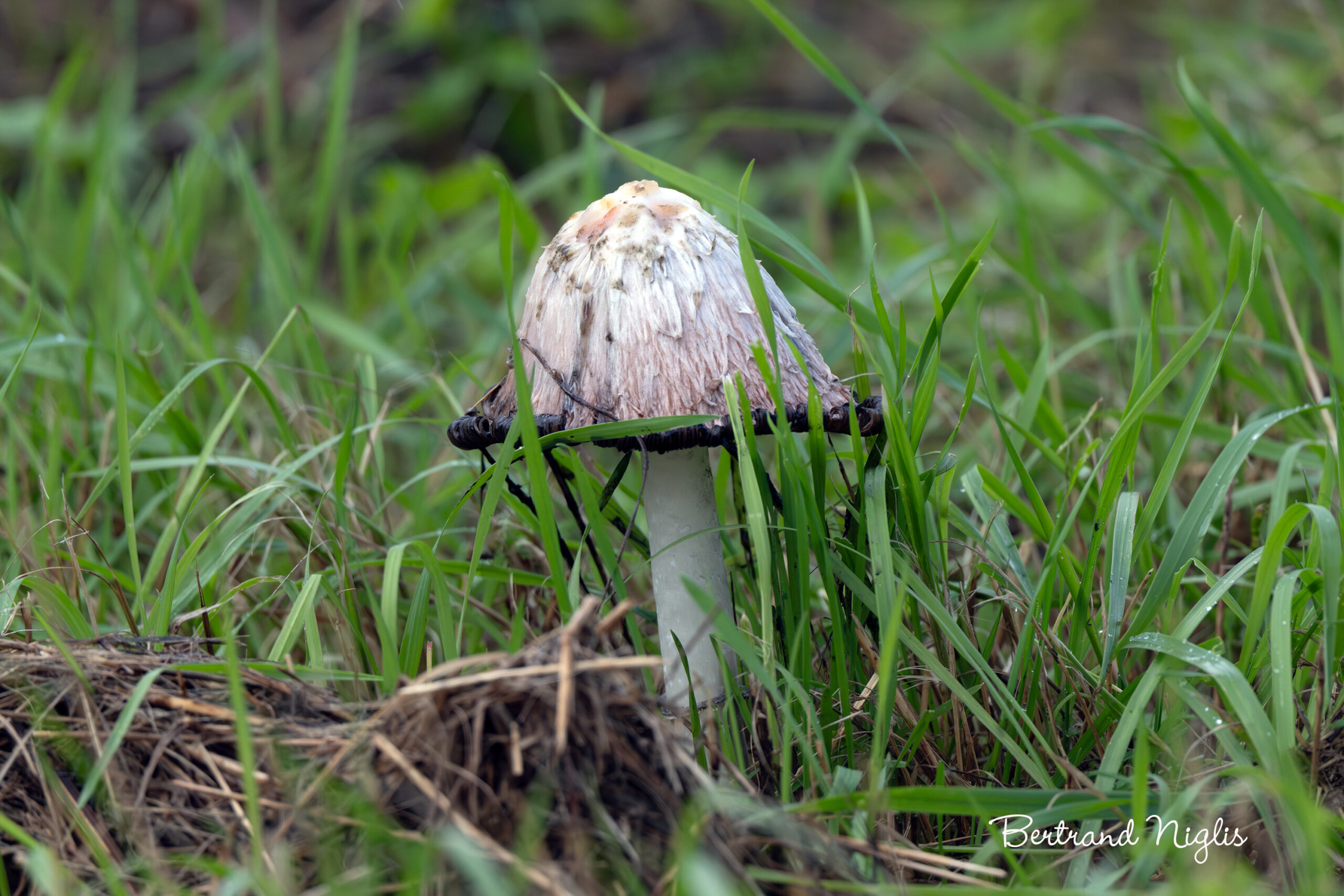 Le coprin chevelu (Coprinus comatus) est l’un des champignons les plus élégants et reconnaissables de nos prairies et bords de chemins. On le repère aisément grâce à sa silhouette élancée et son chapeau blanc et cylindrique, dont la surface est ornée de mèches ou d’écailles fibrilleuses, lui valant son nom vernaculaire. Un sujet jeune, c’est-à-dire dont le chapeau est encore parfaitement blanc et les lames immaculées, est considéré comme un excellent comestible à la saveur douce. Ce qui rend cette espèce particulièrement fascinante est son processus de maturation, appelé la déliquescence. Rapidement après que le champignon ait atteint sa maturité, ses lames (initialement blanches puis rosées) se transforment en une encre noire liquide. Ce phénomène d’autodigestion permet la libération des spores. Le Coprin chevelu joue un rôle écologique crucial. Classé parmi les champignons saprotrophes, il est un maillon essentiel du recyclage naturel. Il dégrade activement la matière organique morte et les sols riches, permettant aux nutriments de retourner à la terre pour le bénéfice des autres êtres vivants.