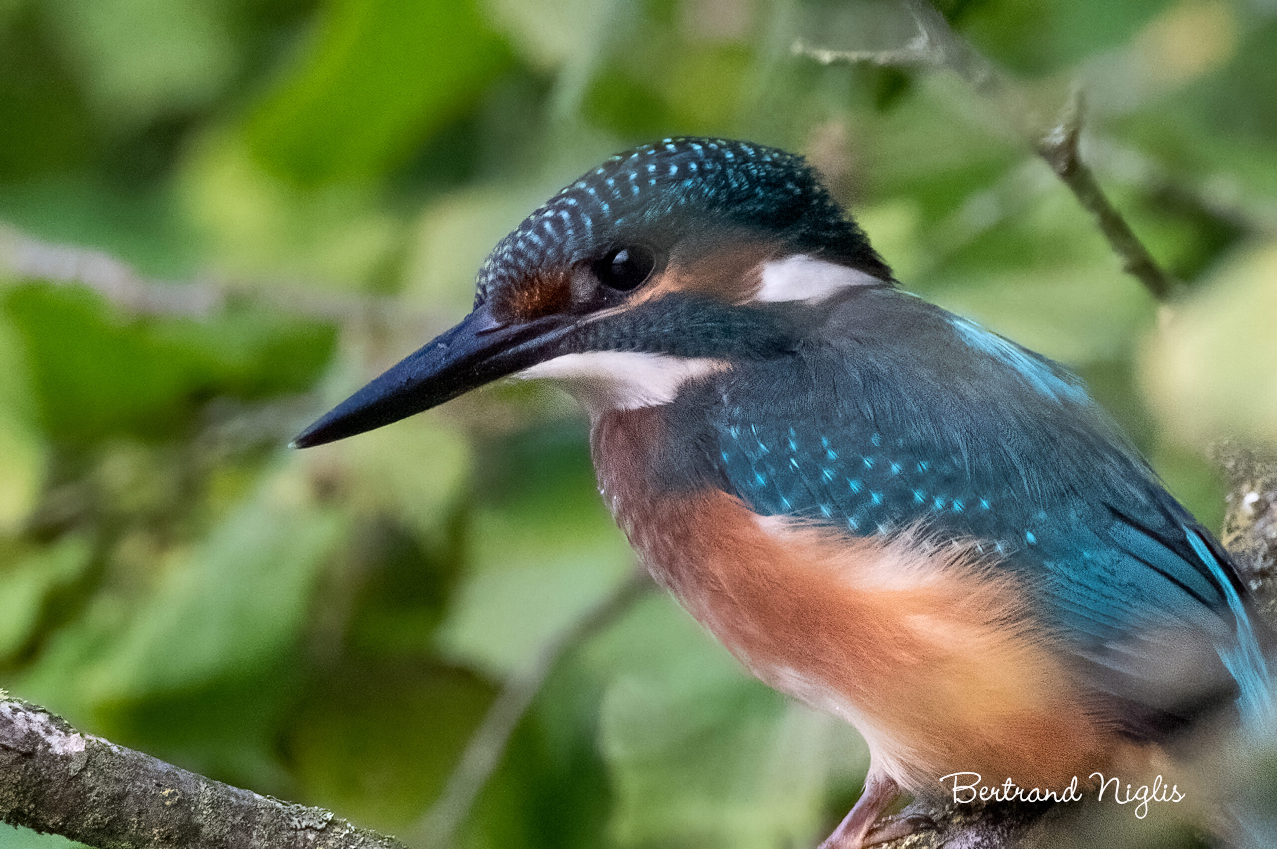 On a coutume de l’appeler « la flèche bleue ». Lorsqu’on se promène le long d’une rivière, c’est souvent ainsi que l’on fait sa rencontre : un trait bleuté qui passe à toute allure et disparaît aussitôt. Oiseau inféodé au milieu aquatique, le martin-pêcheur a l’habitude de se percher sur une branche morte qui surplombe le cours de l’eau. Il dispose d’un certain nombre de reposoirs à partir desquels il scrute les poissons qui évoluent dans l’onde. Lorsqu’une proie apparaît sur son radar, il décolle aussitôt pour fondre sur elle. Une grande éclaboussure marque le point d’impact et le martin ressurgit aussitôt, un poisson dans le bec, pour le manger un peu plus loin, à l’abri des regards. C’est au petit matin que l’on a le plus de chance de voir cet oiseau aux couleurs vives, lorsqu’il se réchauffe au soleil, avant d’entreprendre sa campagne de pêche. Lorsqu’il s’est mis au travail, il ne faut plus lui demander de poser pour la photo : il est plutôt du genre timide et craintif, et quand on s’approche de lui, il préfère se « tirer » comme une flèche.