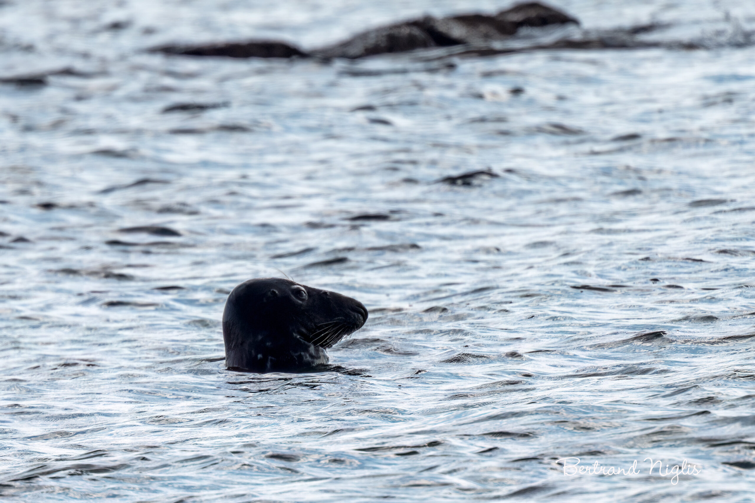 Lorsqu’on se promène en bord de mer, on peut avoir la surprise de voir flotter de curieux bouchons. Ce sont en réalité des Phoques gris (Halichoerus grypus), les plus grands mammifères marins pinnipèdes des côtes françaises, notamment présents le long de la Manche. Ce « cochon de mer » (sens de son nom scientifique) se distingue clairement du phoque commun par plusieurs caractéristiques anatomiques, justifiant son classement dans un genre séparé. Physiquement, l’adulte est imposant : les mâles, qui peuvent dépasser 2,5 mètres et peser jusqu’à 300 kg, arborent une tête allongée au profil rectiligne — souvent comparé à une tête de cheval — et des narines parallèles. Ces géants sont des nageurs très performants, capables de plonger profondément pour chasser. Le Phoque gris est un carnivore opportuniste dont le régime alimentaire est varié, composé de poissons comme le hareng et la morue, de céphalopodes et de crustacés. Bien qu’il chasse généralement en solitaire, il est un animal grégaire lorsqu’il se repose. Il se rassemble en groupes sur des bancs de sable ou rochers au gré des marées. Fait marquant : les bébés naissent avec un pelage blanc, le blanchon, qui n’est ni imperméable ni isolant lorsqu’il est mouillé, ce qui les rend dépendants de la terre ferme pendant les premières semaines. Il s’agit d’une distinction clé avec les autres espèces de phoques.