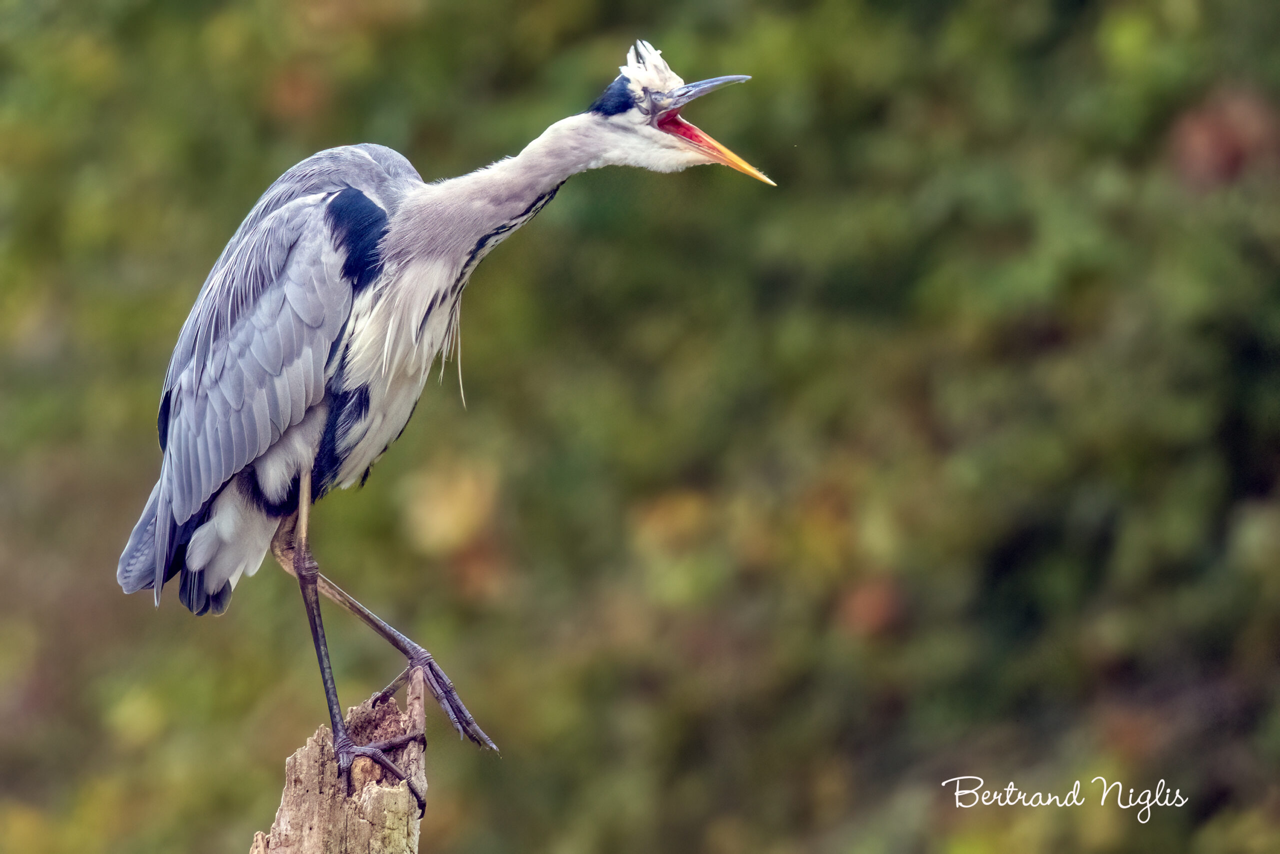 Sur le bois mort du marais, l’échassier d’acier fait face au vent léger. Le cou tendu, les yeux perçants, il sonde les alentours. Aucun signe ne vient troubler la quiétude du moment. Le temps s’étire. Le héron se détend, glissant vers une veille diminuée. Les yeux se referment au rythme de la digestion. Soudain, sans bruit, le bec s’ouvre démesurément large, une béance muette, les yeux plissés. C’est comme si l’échassier était pris d’un phénoménal bâillement. Cette ouverture n’est pas un signe d’alarme ou de menace, mais bien une manœuvre physiologique interne. L’engourdissement dû au repos et à la digestion ralentit le métabolisme. Le cerveau, moins sollicité, fonctionne au ralenti. L’acte de bâiller, cette dilatation des mâchoires, est une réinitialisation vitale. Elle provoque une augmentation subite de la fréquence cardiaque et un afflux d’oxygène au cerveau. ; elle interrompt l’état de somnolence naissante, et chasse la torpeur. Le héron s’assure ainsi de retrouver la vigilance totale, prête à réagir au moindre danger ou à l’apparition d’une proie.