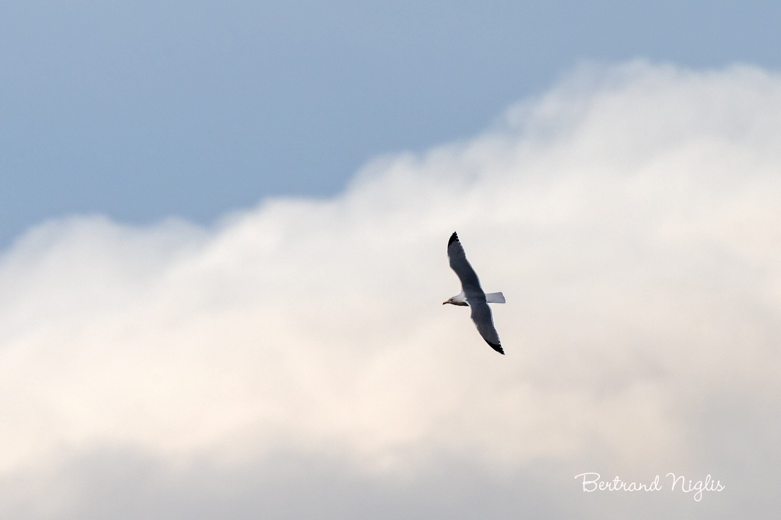 Le vent d’ouest qui souffle en rafales a poussé l’oiseau au décollage. Il se retrouve à l’aise dans cet espace que les nuages aspirent à conquérir. Les contrées maritimes sont très lointaines; pourtant le goéland leucophée se retrouve parfaitement dans son élément. Ses longues ailes robustes lui permettent de surfer sur les courants et de dominer l’immensité de la plaine d’adoption. Il n’est pas le seul à défier la force des éléments, mais c’est sans doute celui qui fait preuve de la plus grande agilité. Cette maîtrise aérienne exceptionnelle, qui fait du goéland leucophée un véritable athlète de haut vol, explique en partie sa capacité à s’aventurer et à survivre loin de la mer. Son installation à l’intérieur du continent est principalement motivée par un opportunisme alimentaire accru et l’explosion démographique de l’espèce. Les décharges publiques et les zones urbaines offrent des sources de nourriture abondantes et faciles d’accès, tandis que la saturation des sites de nidification côtiers force les individus à se disperser et à coloniser de nouveaux habitats. Sur le plan écologique, ce succès a des répercussions. Le goéland leucophée est un compétiteur féroce et expansionniste. Sa présence grandissante entraîne une forte compétition pour les ressources et l’espace avec les autres laridés et les oiseaux marins. Son comportement agressif, marqué par le cleptoparasitisme et la prédation sur les nids, fait de lui une espèce dominante qui modifie l’équilibre des écosystèmes où il s’implante.